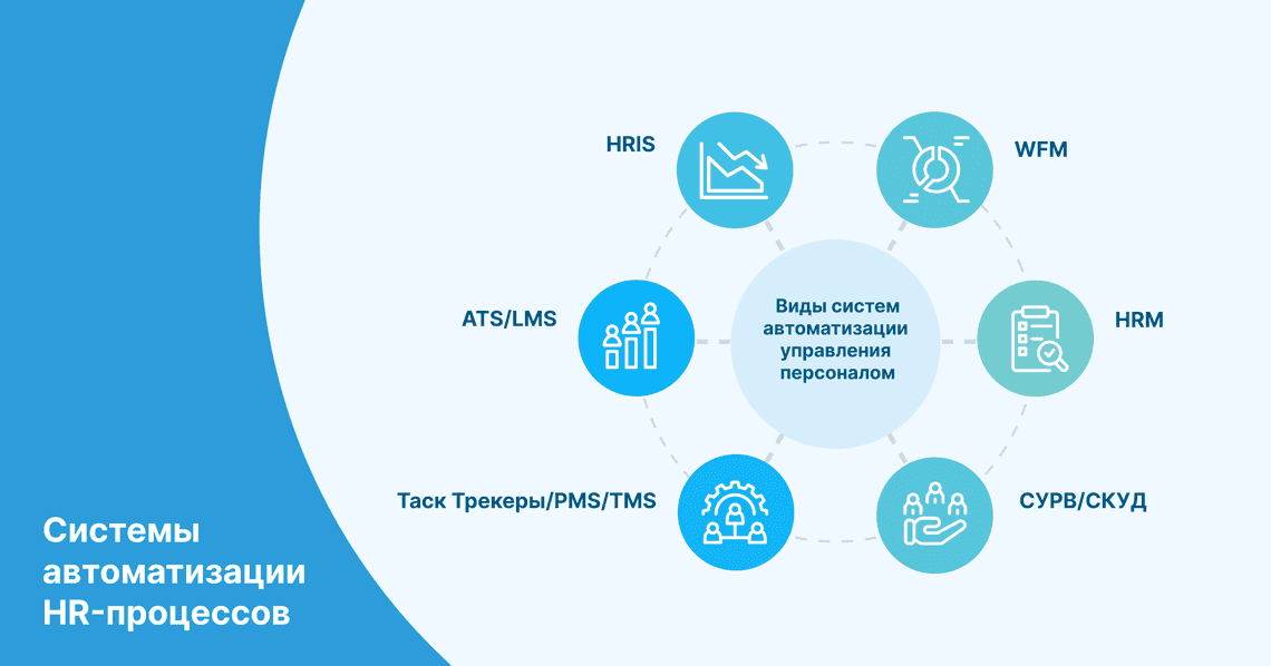 Существует широкий спектр систем и инструментов, предназначенных для оптимизации различных HR-процессов. Зачастую многие из них сочетают функционал друг друга. Наиболее известные виды систем автоматизации управления персоналом: