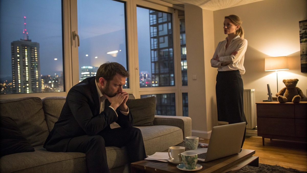 Мария стояла в гостиной, её лицо было бледным, глаза слегка покраснели, как будто она долго думала или плакала. Их сын Дима был уже уложен спать, и в доме царила тревожная тишина, нарушаемая только тиканьем настенных часов.