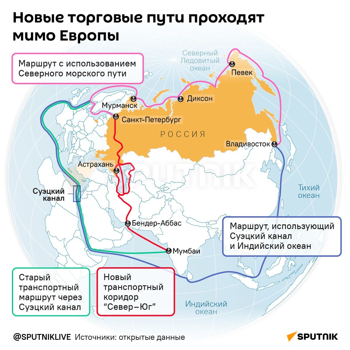 «Синий» маршрут через Суэц (а раньше вокруг Африки) на вышеприведённой карте был успешен и нужен всем, прежде всего потому, что движения колоссальных грузопотоков 300 лет бесперебойно финансировалось через кредитование сначала европейскими (британскими в основном) банками, потом последние сто лет – банками т.н. «международных финансистов» если следовать терминологии новоизбранного Д.Трампа.