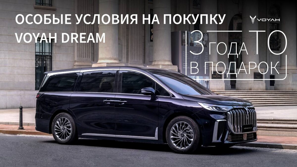 VOYAH объявляет об эксклюзивном предложении — три года ТО в подарок при приобретении гибридных минивэнов премиум-класса VOYAH DREAM в салонах официальных дилеров бренда. Спецпредложение распространяется на ограниченную партию моделей и действует в течение трех лет (или 120 000 км пробега с момента покупки, в зависимости от того, что наступит раньше). Рекомендации по регламенту обслуживания: 🛠 Первое ТО — через 1 000 километров или один месяц после продажи (в зависимости от того, что наступит раньше). 🛠 Второе ТО — по достижении 10 000 километров пробега или через 12 месяцев с даты продажи (в зависимости от того, что наступит раньше). 🛠 Последующие ТО — через каждые 10 000 километров или спустя 12 месяцев после проведения предыдущего техобслуживания (в зависимости от того, что наступит раньше). 💫 Роскошный VOYAH DREAM воплощает в себе уникальное сочетание передовых технологий и комфорта. Благодаря сверхдлинной колесной базе 7-местный минивэн впечатляюще просторен — внутреннее прост