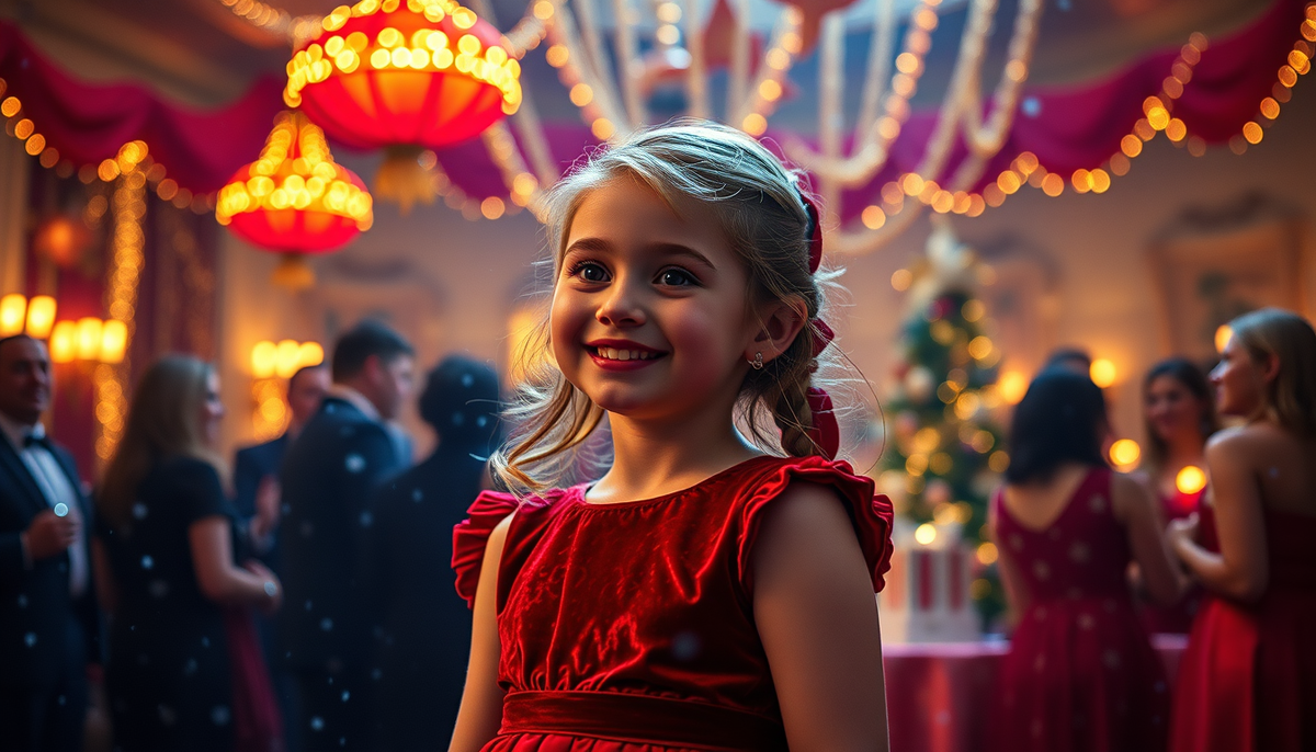 На школьной ёлке Женя сияла ярче всех гирлянд. Красное бархатное платье струилось при каждом движении, а сама она словно светилась изнутри от счастья.