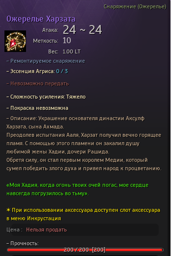 ※ Показатели эссенции Агриса для аксессуаров Харзат применяется индивидуально, как и для других аксессуаров.