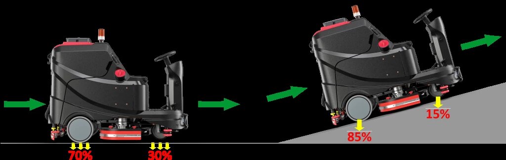 Так от чего зависит поднимется поломоечная машина на подъем или нет: Распределение веса по осям у поломоечной машины 30/70, связано это что отсек с аккумулятором и б