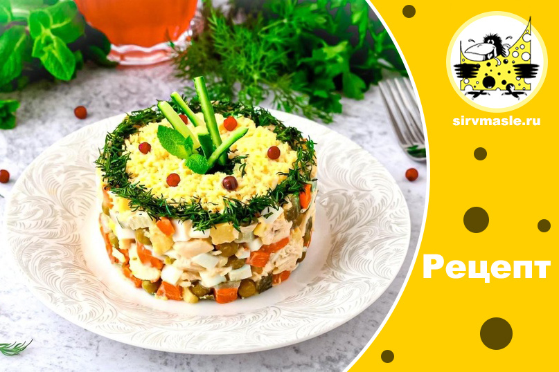 Приготовление: 1. Все овощи варим в мундире. Яйца вкрутую. Затем остужаем и чистим. 2. Нарезаем кубиками морковь, картошку, лук, огурцы, колбасу. Крошим мелко яйца. Сливаем жидкость из банки консервированного горошка и добавляем горошек в салат. 3. Солим, перчим по вкусу. 4. Заправляем майонезом и тщательно перемешиваем. 5. Ставим в холодильник. Чтобы пропитался и остудился. Всё. Подаем на стол, украсив веточкой укропа или петрушки. Приятного аппетита! Продукты из рецепта: 1. Огурцы соленые Россия 2. Яйцо категория СО Россия 3. Морковь Россия 4. Майонез Слобода Провансаль 5. Колбаса Докторская ГО