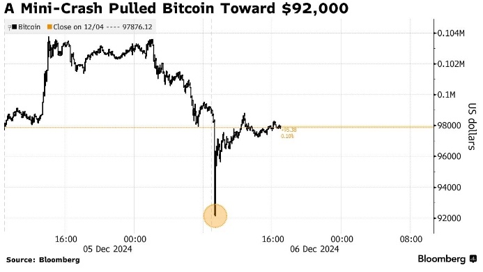 Стоимость биткоина за короткий промежуток времени после исторического скачка выше 100 000 долларов снизилась почти на 7%. Это заставило некоторых трейдеров задуматься о возможном отступлении.