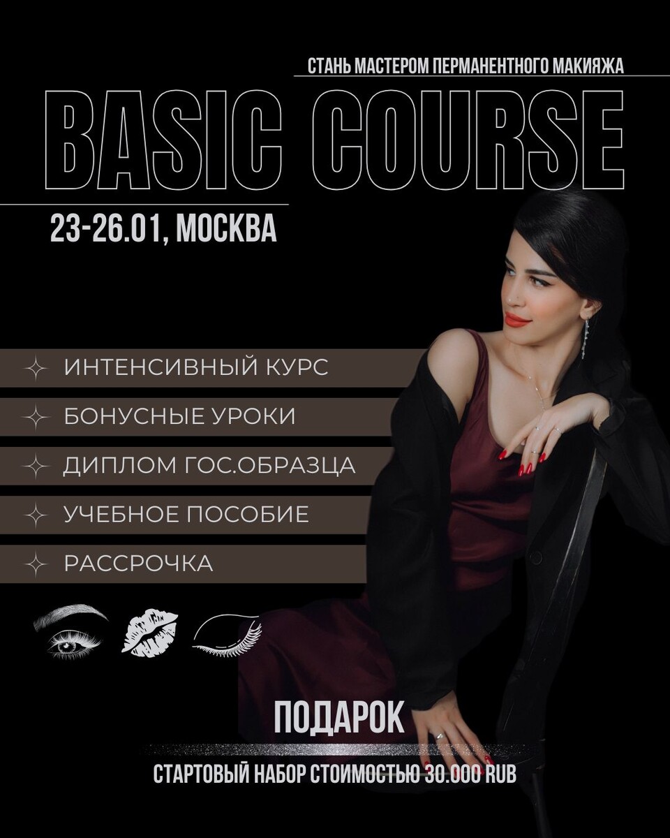 ⏳ Длительность обучения - 4 дня: - 1 день – полное погружение в профессию: теория, основы техник, постановка руки, тренировка на бумаге и искусственной коже - 2-4 дни – интенсивная практика на искусственной коже, демонстрация от тренера-преподавателя, самостоятельная практика на моделях. 🔹 Строение кожи и работа с разными типами 🔹 Колористика и пигментология 🔹 Разбор пигментов и особенности работы с разными видами 🔹 Конфигурация игл и оборудования 🔹 Построение эскизов и др. 🔹 Постановка руки и много практики 1. Как находить клиентов? 2. Секреты создания продающих фотографий и программы для их обработки 3. Психология общения с клиентами По окончании курса вы получите: ✅ Свидетельство государственного образца (квалификация «Косметик 4 разряда») ✅ Именной сертификат о прохождении обучения по трем зонам ✅ Методическое пособие ✅ Бессрочный чат поддержки в Telegram —— 🖤 YULIYA ALIYEVA permanent studio & school