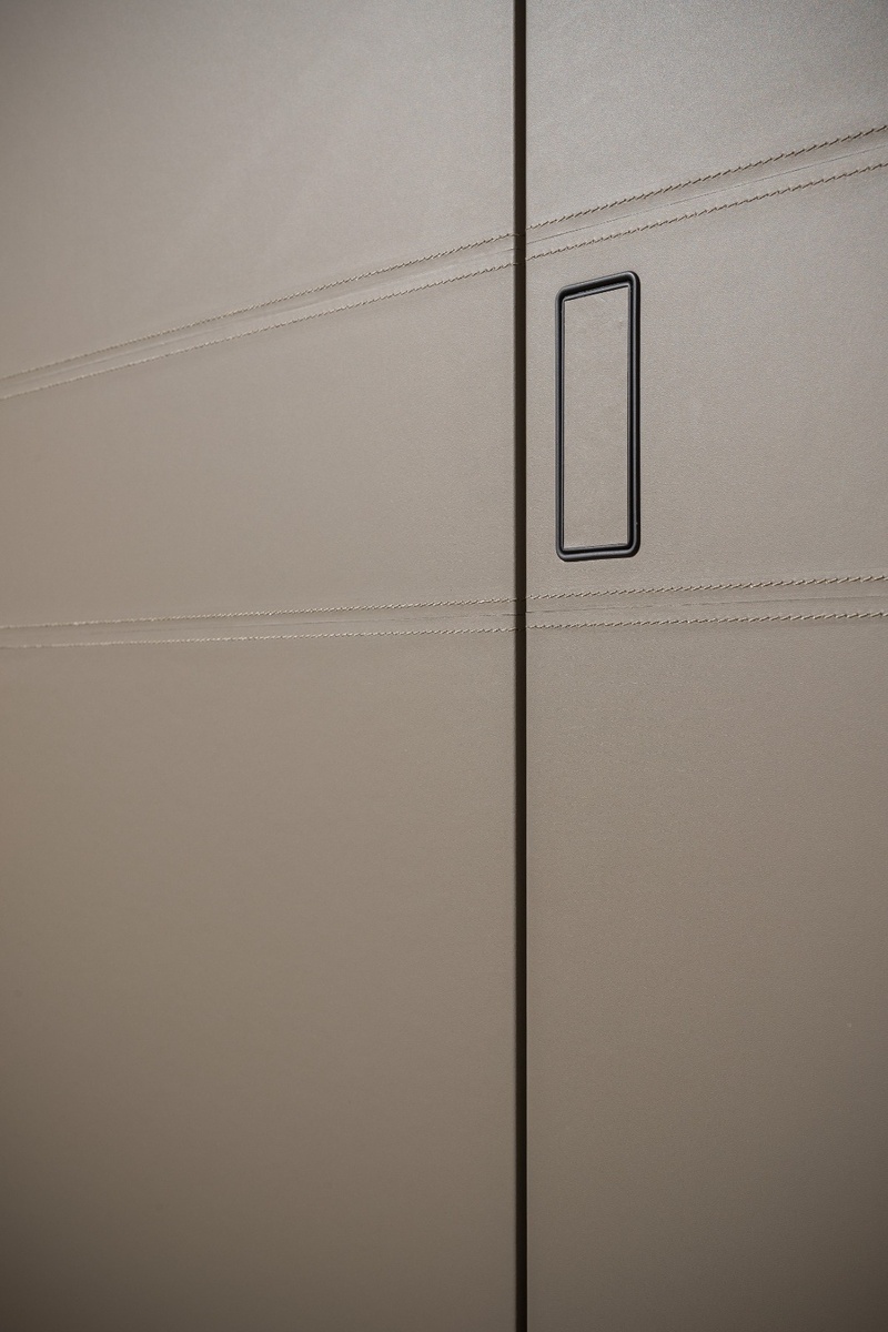 Современная тенденция. формирующая дизайн дверных фасадов шкафов основывается на дизайне ручек. Это уже далеко не та простая конструкция, которая прикручивается двумя винтами. Теперь ручки являются частью фасада, они интегрированы в дверь и составляют с ней единое целое. Есть два вида скрытых, интегрированных в паз ручек: стандартная Tecno и более дизайнерская Nodo, более похожая на то, что использует люксовый бренд Molteni. Ручки можно красить в любой цвет матового лака, можно использовать в любой крашеной, меламиновой или шпонированной отделке. Ручки доступны в любой высоте. Также в ассортименте Dall`Agnese имеется широкий выбор небольших накладных ручек с вырезом, доступных в 4 цветах металла. Интегрированная до середины высоты фасада, ручка GREEN красится в матовый лак или покрывается шпоном. Эффектная ручка Freccia имеет вид стрелы и определяет сложную геометрию двери, подчеркивает ее линейность и строгость фасадов. Она доступна в 3 цветах - латунь, титан, черный, и особенно эффек