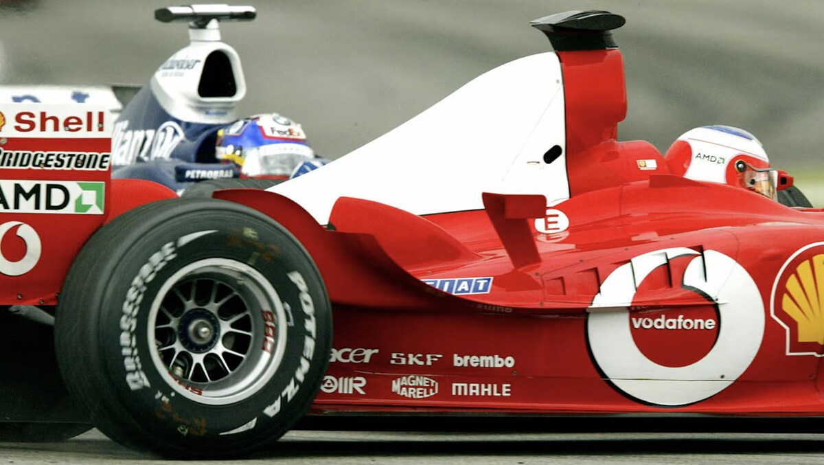 Михаэль Шумахер из «Феррари», Хуан Пабло Монтойя из «Уильямс» и Кими Райкконен из «Макларен» боролись за титул чемпиона мира 2003 года перед предпоследним этапом сезона в Индианаполисе, который проходил в непростых погодных условиях.