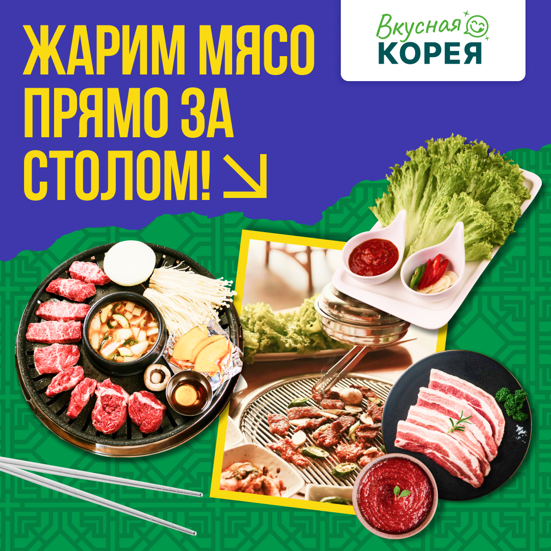 Корейские рестораны, специализирующиеся на барбекю, оборудуют столы встроенными печками или грилями, на которых можно жарить различные виды мяса, такие как свинина (самгёпсаль), говядина (кальби) или курица. Идея в том, чтобы каждый участник обеда самостоятельно готовил свое мясо, наслаждаясь процессом, а также обсуждая и общаясь с друзьями или семьей.