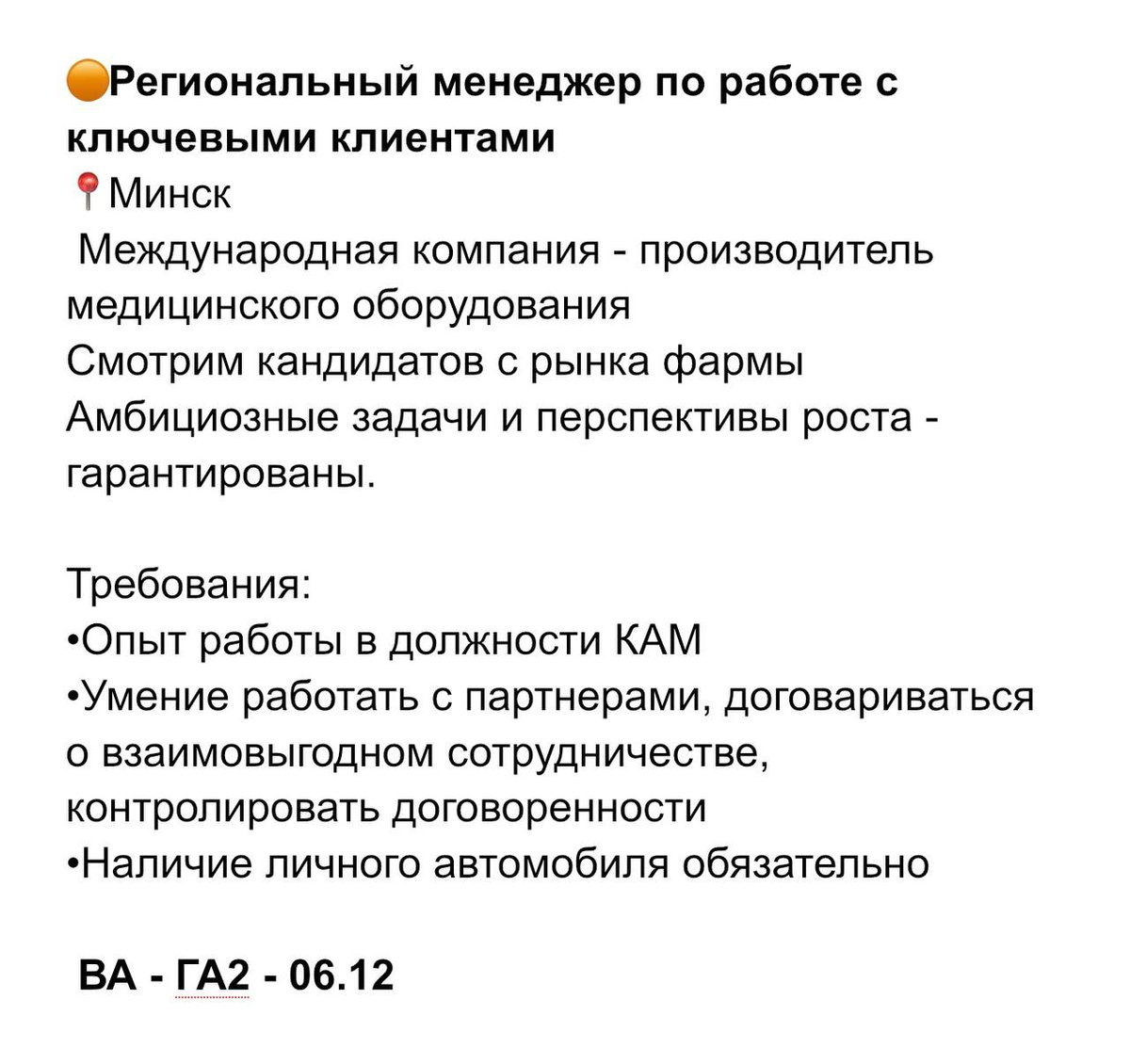 Говорят, что личность формирует среда, а деформирует - пятница... Если согласны хоть с частью утверждения - оставайтесь, так как по пятницам буду радовать вашу личность подборками вакансий. Сегодня опять много вакансий, они - разные, что хорошо, для декабря. 🟠Рекрутер в штат юридической фирмы (подбор юристов и административного персонала). Код-АККС-КН- 03.12 🟠Менеджер по работе с маркетплейсами оптовая торговля 📍Москва, возможен гибрид. Требования: •Опытом работы с маркетплейсами (Ozon, Wildberries) по осуществлению полного цикла продаж Условия: •ТК РФ •ЗП от 90 тыс. руб. Процент от продаж. Код-ИРВ-ОП- 04.12 🟠Директор по персоналу (агро-промышленный комплекс) Масштабные задачи, оклад+ годовая премия, соцпакет, оплата релокации и жилья Требования: •Опыт HRD \ штат от 1500+ чел \ желательно АПК, пищевое производство •Географически распределенная команда •Опыт автоматизации всех HR-процессов, управление HR брендом •Сильный блок HR-аналитики •Лидер изменений Код-АККС-АС- 05.12 🟠P
