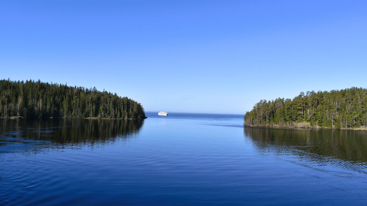 Теплоход покидает Валаамский архипелаг и выходит на бескрайние просторы Ладоги.