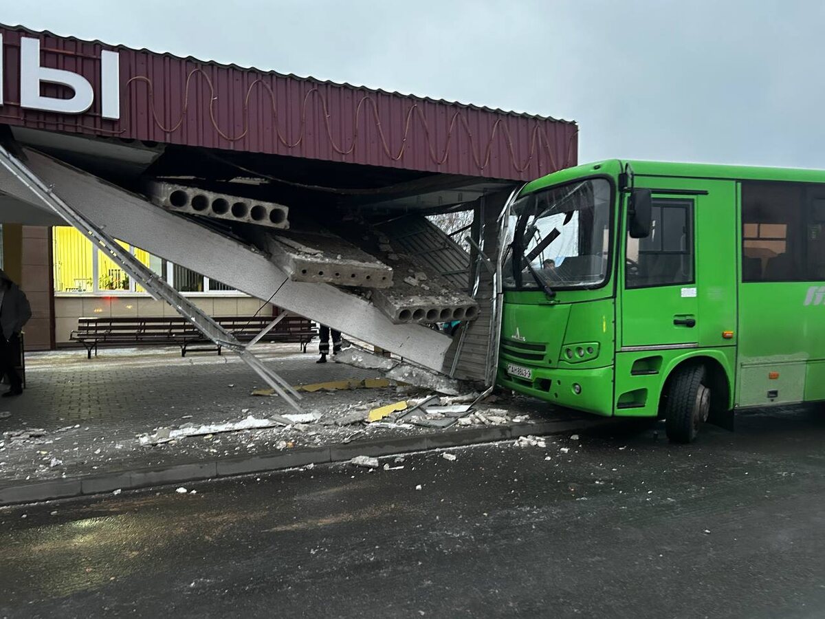 В Житковичах автобус врезался в навес автостанции: рухнула крыша