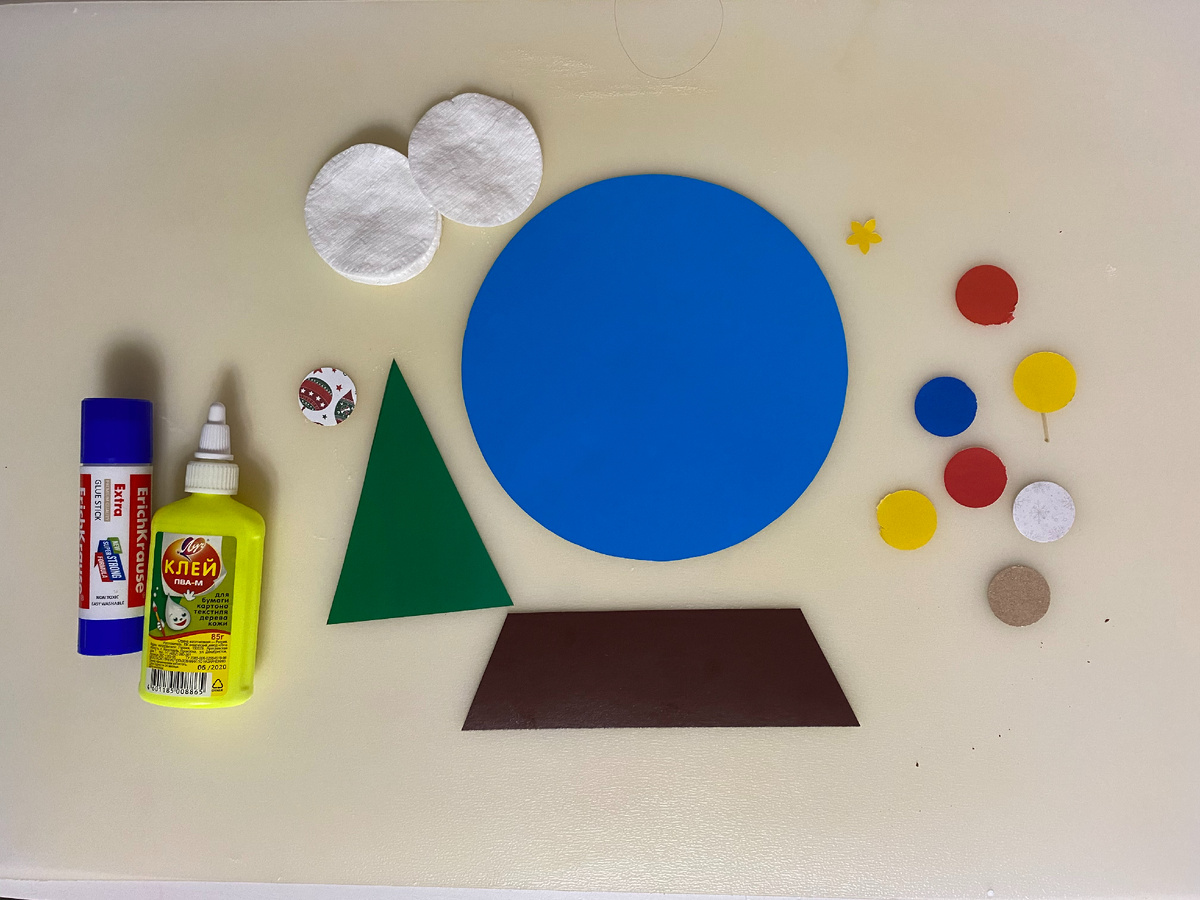 1. Снежный шар Понадобится: цветной картон; клей; ножницы; ватные диски. Ход работы: необходимо подготовить основу-круг из цветного картона и вырезать трапецию из другого по цвету картона - это будет подставка для снежного шара. Еще вырезаем из картона елочки. Далее приклеиваем круг на подставку-трапецию и заполняем «снежный шар». Приклеиваем елочки, снег из ваты, украшаем елочки. 2. Елочный шар Понадобится: цветной картон и бумага; клей; ножницы; если есть, то дырокол. Ход работы: необходимо нарисовать на плотном картоне елочный шар и вырезать его – это будет заготовка-основа для нашей открытки. Затем вырезаем из цветной бумаги или картона много кружочков, можно разного диаметра. Если есть дырокол, можно воспользоваться им. Приклеиваем получившиеся кружочки на основу-шар. Можно присыпать блестками. 3. Открытка-трафарет Понадобится: картон темных цветов, белая гуашевая краска, спонж или губка, тара для краски. Ход работы: сначала подготавливаем «трафареты». Рисуем на любом листочке