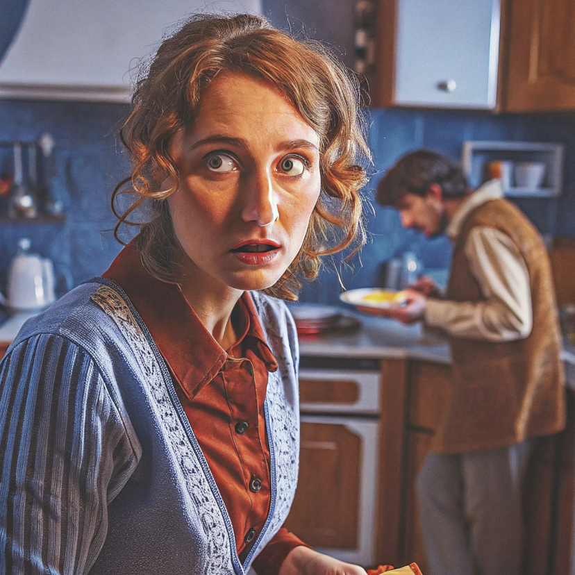 Она стояла у кухонного стола, одной рукой придерживая чашку с чаем, а другой нервно крутила ложечку. Дмитрий, её муж, сидел напротив, слегка сутулясь. Его руки беспомощно лежали на столе, а взгляд был устремлён куда-то в сторону, будто он пытался избежать прямого контакта.