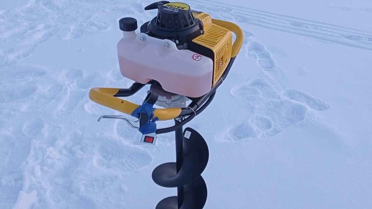 Дело в том, что в нашем регионе лед очень быстро промерзает до пятидесяти сантиметров к середине декабря, а в феврале может достигать уже полтора метра. У нас нет ручного бура, хотя его полезно иметь в период с конца ноября до середины декабря или начала января, но в остальные месяцы: январь, февраль, март и начало апреля, - ручной бур в бассейне Амура совершенно бесполезен. Бурить лед толщиной более 50 см таким способом сплошное мучение, особенно когда рукоятка шнека приближается к поверхности льда, и Вы на коленках, уставшие и вспотевшие, прикладываете все оставшиеся силы, чтоб добурить эту несчастную лунку. Пот заливает глаза, скорость бурения маленькая, кроме того, шнек постоянно закусывает, так как вся рабочая часть уже в лунке, а потом ручка упирается в лед, а Вы так и не пробурили его насквозь. Обидная досада: в этом месте лед промерз слишком сильно, и длины ручного шнека не хватает.