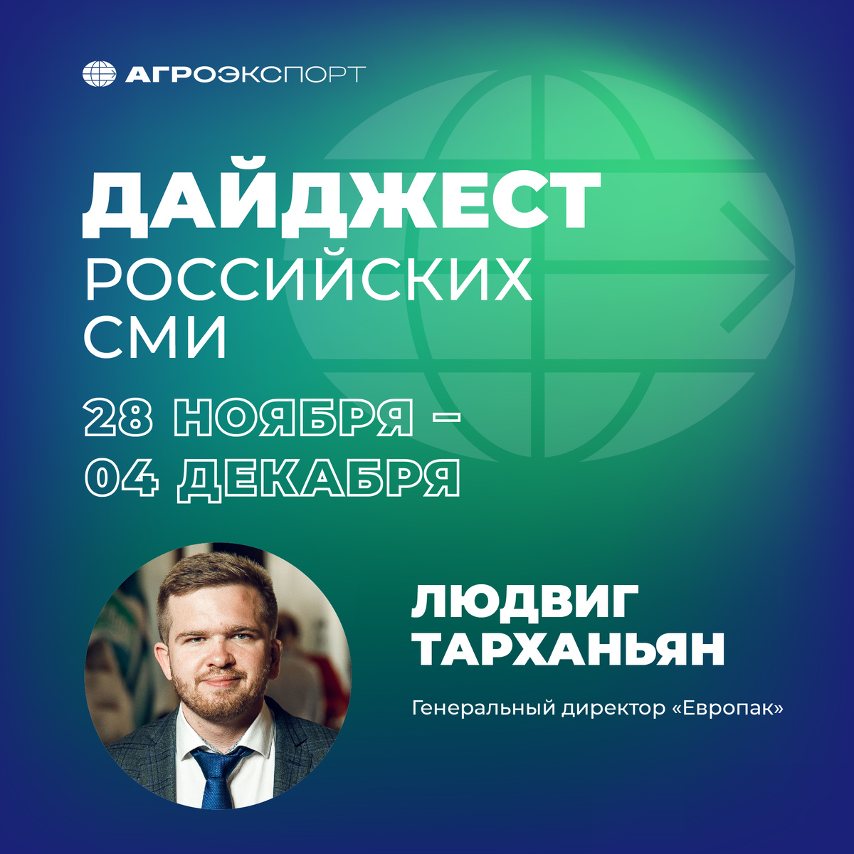 Читайте в свежем выпуске: ✅В 2025 году квота на экспорт пшеницы составит 11 млн тонн; 📊Россия за 10 месяцев увеличила экспорт макаронных изделий в 1,5 раза; 🌻Доля ГК «Европак» в экспорте растительных масел из России по итогам 10 месяцев 2024 превысила 13%; ❌Правительство России продлило продовольственное эмбарго до конца 2026 года; ✔В рамках деловой миссии российских агроэкспортеров в Саудовской Аравии прошло более 210 b2b-встреч; 👍ГК «Дамате» начнет экспорт донской индейки и утки в Египет. Специальный комментарий — генерального директора «Европак» Людвига Тарханьяна о планах по развитию экспортного направления в 2025 году.