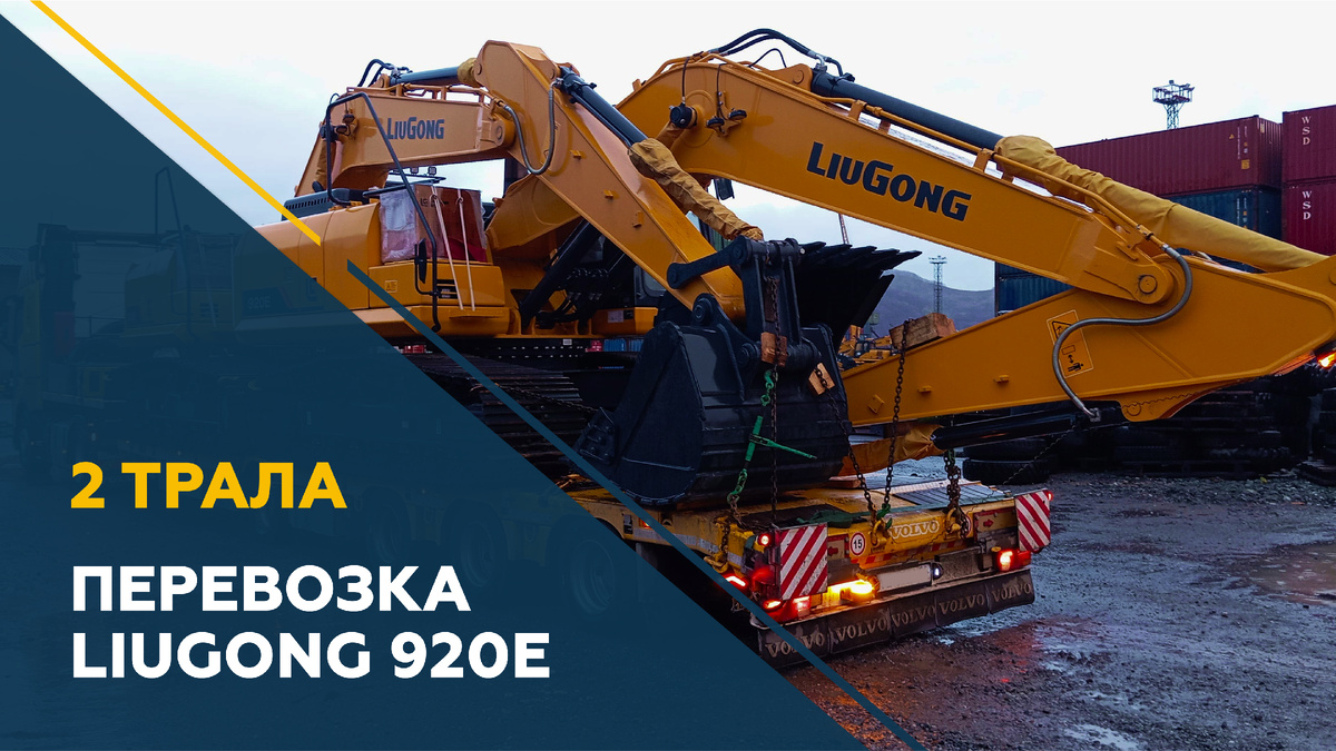 Для перевозки использовали 2 сцепки: Volvo 4х2 с 4-осными тралами. Габариты 1 трала: 20 м х 2,8 м х 4,1 м. Вес одного экскаватора: 21 тонна. Маршрут: Владивосток — Екатеринбург — Сургут. Если вам требуется перевезти негабаритный груз, свяжитесь с нами и оцените качество наших услуг!