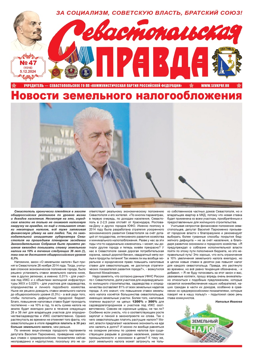 Газета "Севастопольская правда" № 47 от 6 декабря 2024 г., доступна в электронном виде