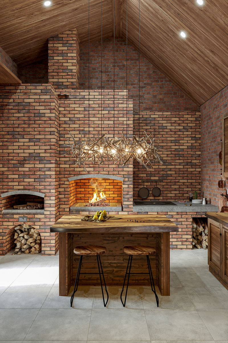 Проект банного комплекса разрабатывали для молодой пары, которые недавно построили дом в тихом уединенном месте и поняли, что чего-то не хватает.. за этим и обратились к нам. Интерьер банного комплекса в русском стиле создает уютную и теплую атмосферу, идеально подходящую для отдыха и релаксации. Основной акцент сделан на использование натуральных материалов, таких как дерево и кирпич, подчеркивающих аутентичный русский колорит. Вся мебель выполнена из массива дерева и уникальна благодаря естественным рисункам и текстуре древесины. Стены выполнены из красного кирпича, придающего помещению деревенский шарм. Потолок и элементы стен отделаны деревом, что усиливает ощущение природной теплоты и обособленности от городского шума. Освещение осуществляется посредством оригинальной люстры, напоминающей пучок веток, что добавляет элемент креативности и поддерживает природную тематику. Центральное место занимает массивный деревянный стол с такой же скамьей, вокруг которого расставлены удобные к