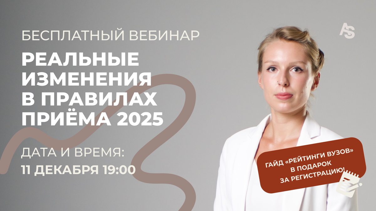 «ЕГЭ становится только сложнее». «Все места уйдут льготникам и целевикам». «Отследить конкурентов в списках будет невозможно». Именно так считают многие выпускники и их родители. Но что, если я докажу, что шанс поступить в вуз мечты есть у каждого? Приходите 11 декабря в 19:00 на мой бесплатный вебинар «Реальные изменения в правилах приема 2025». — что изменилось в правилах приема 2025; — как нововведения повлияют конкретно на вас; — какие подводные камни кроются в новых правилах. — как устроен процесс поступления; — как по максимуму использовать все свои возможности, чтобы стать студентом желанного вуза; — как построить эффективный план подготовки. ❗️При регистрации через бот вы получите небольшой бонус от меня — полезный гайд «Рейтинги вузов», с которым станет проще ориентироваться в университетах. Чтобы зарегистрироваться на вебинар, нажимайте кнопку start в боте — ссылка на встречу придет ближе к 11.12!
