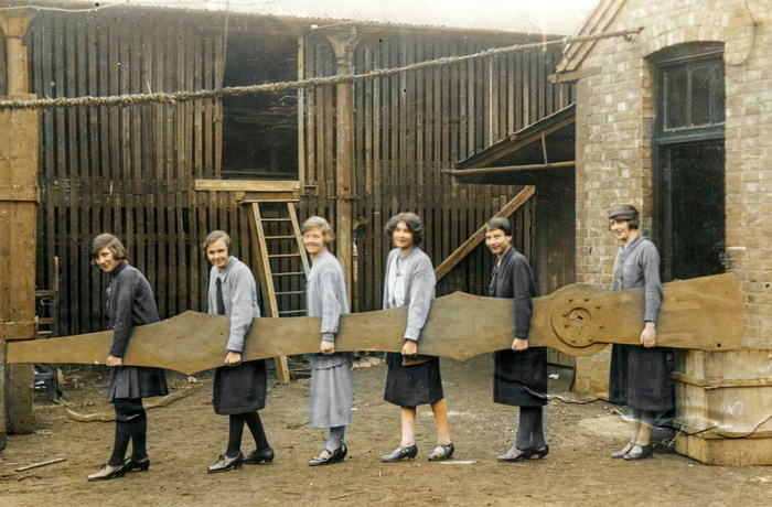 Что бы это значило?)) А все просто, 6 женщин несут минутную стрелку)) Женщины счастливы, а счастливые часов не наблюдают, поэтому они сняли одну из 4-х минутных стрелок с башни Зингеровского швейного завода, который находится в Клайдбанке. Шотландия, 1926 год.