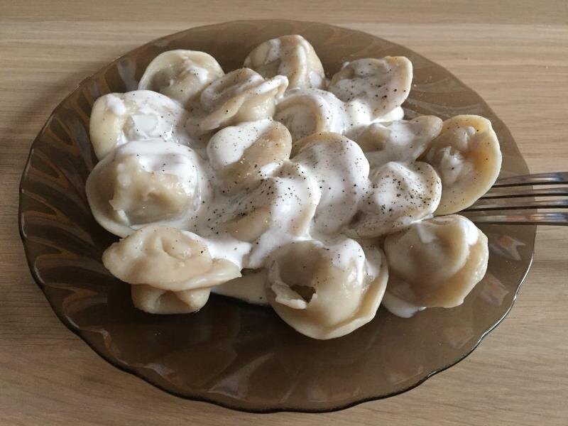 Я раскладываю пельмени по тарелкам. И зову всех к столу.