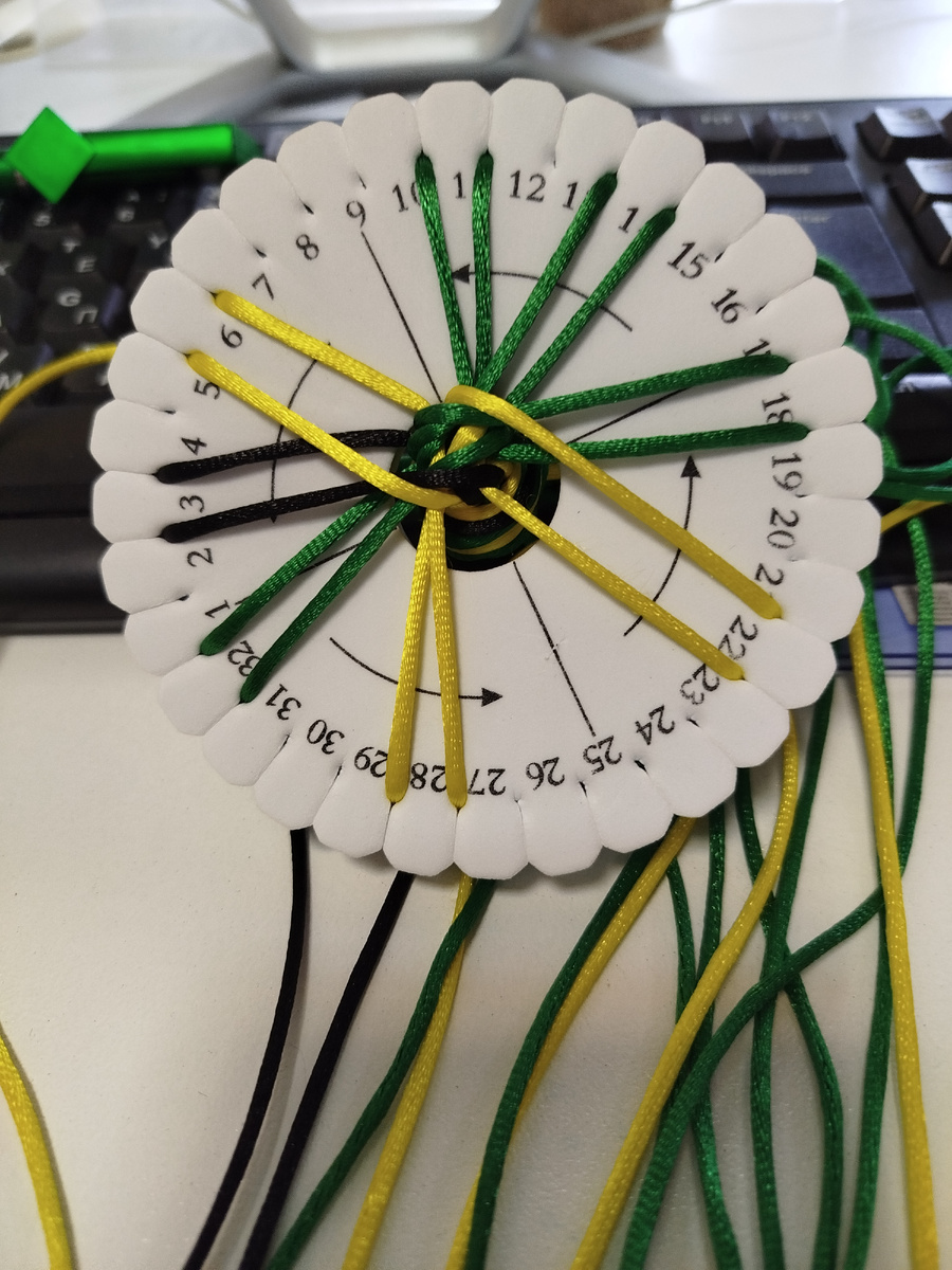 Вот так шнурочки на кружочке размещаешь и плетёшь.