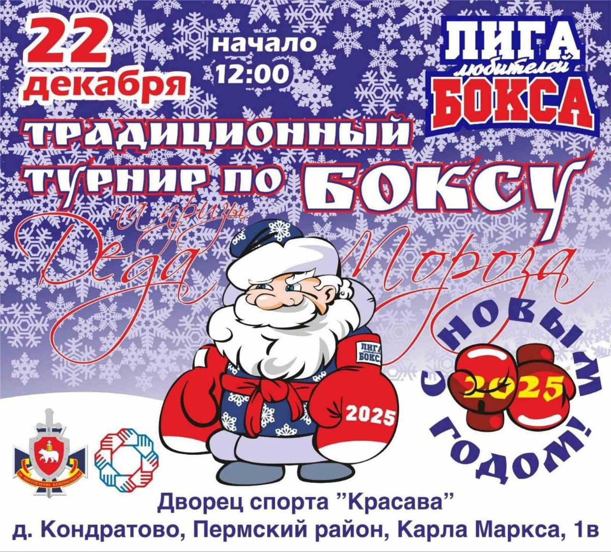 💪 Приглашаем ВСЕХ стать зрителями традиционного турнира по боксу на призы Деда Мороза, который пройдет 22 декабря в 12:00 во Дворце спорта «Красава» по адресу: д. Кондратово, ул. Карла Маркса, 1 «в».