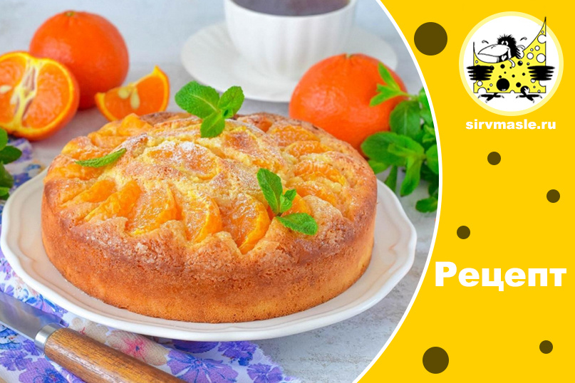 6. Отправляем пирог в разогретую духовку на 180 градусов примерно на 30 минут. Продукты из рецепта: 1. Мандарины 2. Масло сладкосливочное 3. Сахар 4. Разрыхлитель теста 5. Сметана 15% 6. Мука пшеничная 7. Яйца 8. Апельсины