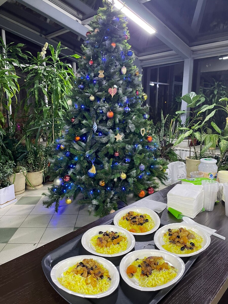 Всегда думала, что плов - это рис, мясо, много лука с морковкой и специи. А тут нас угостили совершенно необыкновенным пловом с сухофруктами. И он скорее сладкий, чем солёный или острый. Называется - плов азербайджанский. Готовила женщина, чей муж проходит в реабилитацию в центре, где сейчас нахожусь. Просто взяли и решили угостить всех национальным пловом. Это было очень приятно и неожиданно. Я, конечно, была в первых рядах. Хотя, к плову в целом отношусь спокойно, даже скорее прохладно. Ведь, в плове много риса, а он как, известно, крепит. Повар рассказала, что рис для этого плова варится по особому рецепту больше 4 часов. Используется много сладкого сливочного масла, куркума, лимонный сок, мясо и сухофрукты.ма Теперь я точно знаю, что такое азербайджанский плов. Спасибо за угощение!
