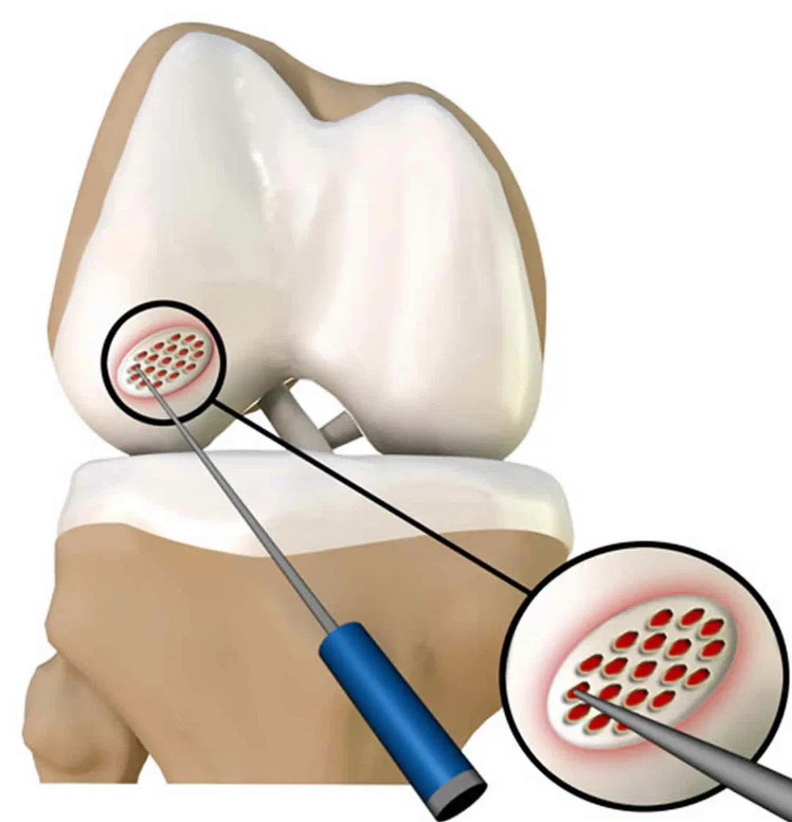 Очень много раз писал о хряще. О том, что он не восстанавливается до исходного состояния. Что никакие таблетки/грязи/мази не попадут туда, где развивается артроз, и не начнут там восстанавливать хрящи. Кому интересно - может полистать канал, найти эти статьи, и почитать. Сейчас пишу для тех, кто уже в курсе и достаточно информирован. Как-то раз я рассказывал про выращивание собственных молодых клеток «в пробирке» с последующей подсадкой в зону дефекта хряща. Очень дорого, по узким показаниям, но эффективно. При этом я упоминал метод микрофрактурирования. Повторюсь. Когда в коленном (чаще всего) суставе в результате травмы появляется участок повреждения хряща, и хозяин колена - спортсмен высокого уровня, то обычно эта травма - спортивная. Соответственно, атлета клуб быстренько эвакуирует в правильную клинику, там ему быстренько делают МРТ, обнаруживают проблему, и берут пациента в операционную. В операционной делают артроскопию (вводят в сустав видеокамеру), обнаруживают дефект хряща