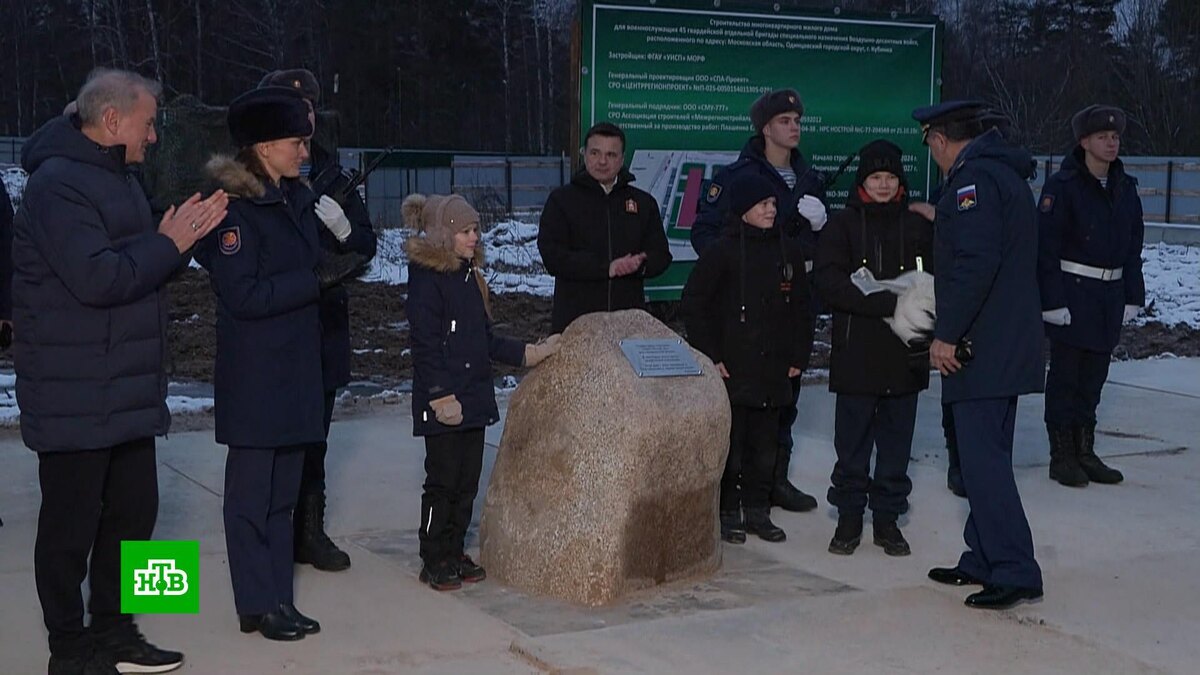 [ Смотреть видео на сайте НТВ ] Завершить строительство дома планируется в 2027 году. Сегодня в подмосковной Кубинке прошла церемония закладки первого камня многоэтажного дома для военнослужащих 45-й гвардейской бригады спецназа ВДВ. Проект осуществлялся при поддержке Сбербанка. В церемонии приняли участие председатель правления Сбербанка Герман Греф, губернатор Московской области Андрей Воробьев, замминистра обороны Юнус-Бек Евкуров. Герман Греф, президент, председатель правления Сбербанка: Для нас большая честь построить жилье для спецназовцев, для нашей элиты. Это лучшие люди, те, кто прошел школу армии, школу спецназа. Они знают непонаслышке, что такое защищать Родину. За их спинами чувствуем себя уверенно, они — наша крепость. Андрей Воробьев, губернатор Московской области: Сегодня мы присутствуем на важном мероприятии, которое позволит нам вскоре увидеть комфортабельное жилье и все необходимое для комфортной жизни детей, семей всех тех, кто находится в этом славном и дорогом нам