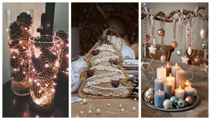 Сделанный своими руками новогодний декор имеет особую ценность, ведь он может стать прекрасным подарком для ваших близких и в то же время украсить ваш дом, создавая уютную праздничную атмосферу. Давайте вместе погрузимся в мир очаровательных идей создания новогоднего декора своими руками. Еловые шишки — это прекрасный выбор для декора. Они могут преобразить ваш дом, квартиру: обеденный стол, входные двери или подоконник. С помощью клеевого пистолета к основанию шишек прикрепите атласную ленту, канат или плотную нить — на них будет держаться украшение. Для более выразительного вида декорируйте шишку разноцветными маленькими помпонами. Подсвечник своими руками для новогоднего стола получится благодаря деревянному основанию, на которое приклеиваются шишки, яркие ягоды, веточки ели, желуди. Чтобы подсвечник приобрел завершенный вид, всю композицию можно припорошить искусственным снегом или же блестками. Достаточно свернуть ветку искусственной ели в круг, чтобы получить красивую основу для