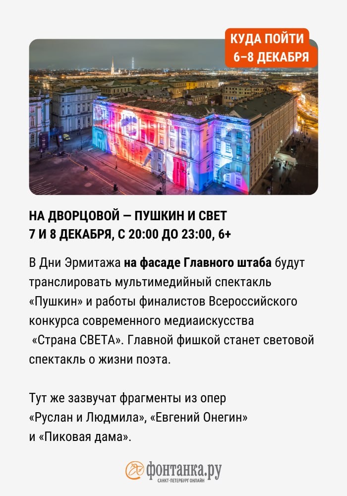 В первые по-настоящему зимние выходные не пропускаем гастроли «Мастерской Брусникина», смотрим первые новогодние спектакли и отправляемся на прогулки по разукрашенному центру.