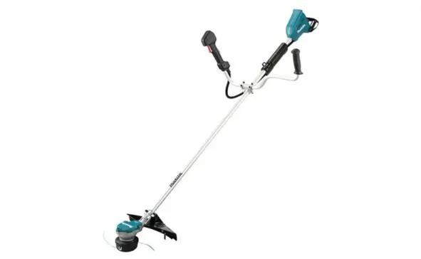 Продолжает рейтинг лучших моделей Makita DUR368AZ LXT. Триммер работает на аккумуляторе и имеет ширину скашивания в 43 см, а его нож вращается со скоростью до 6500 оборотов за минуту. Двигатель устройства мощностью 550 Вт питается от аккумулятора емкостью 6 А·ч при напряжении 18 В. Одни из ключевых особенностей этой модели – это плавный старт двигателя и наличие тормозной системы, повышающие удобство и безопасность эксплуатации.