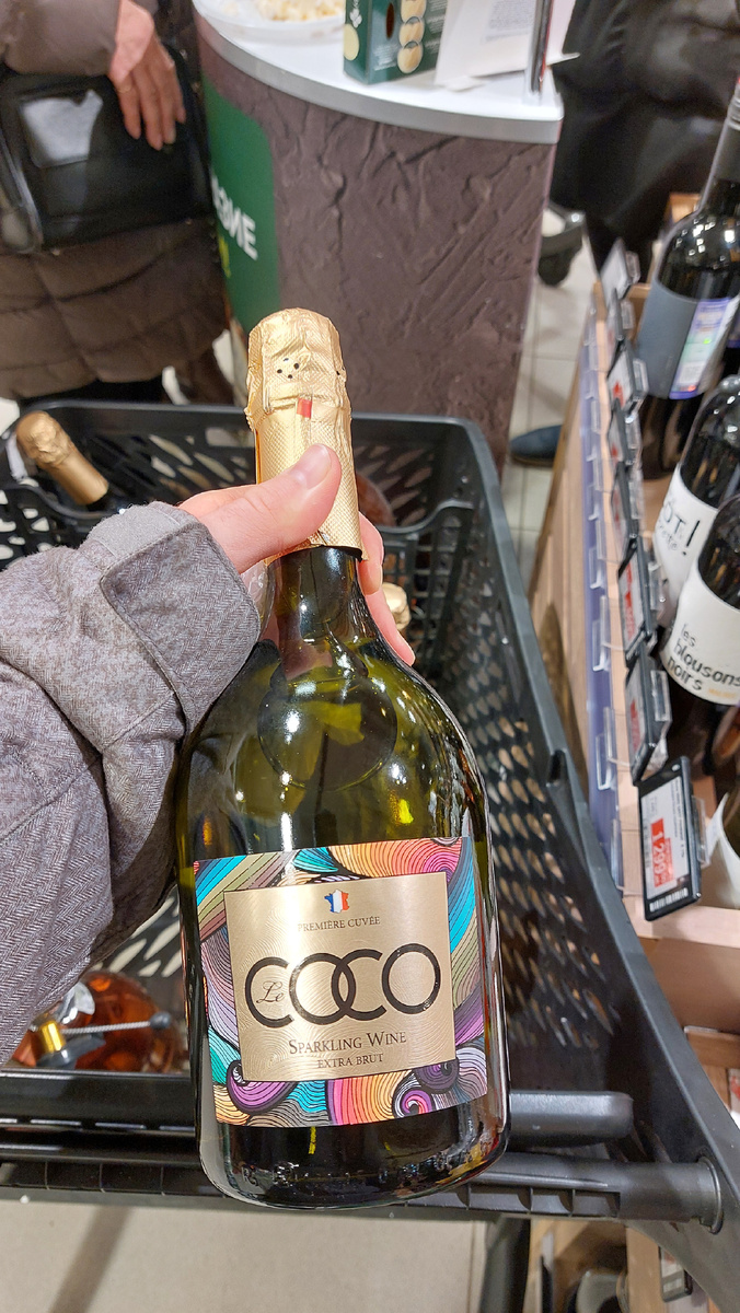Армянские вина набирают популярность и распространение на винных полках наших магазинов. И это хорошо, потому что многие армянские вина находятся в очень хорошем балансе цена-качество. И вот, дошло до игристых. Сегодня расскажу вам про необычное вино, которое удалось попробовать случайно, на дегустации в Перекрестке: Le COCO extra brut. Вино продают в преземистой пузатой бутылке. Если кто-то знает название, пожалуйста, напишите в комментариях. В таких иногда продают итальянские игристые, Кубань-Вино в такой же продает Cuvee Alexander. Бутылку не вскрывал, потому про пробку и фольгу ничего особо не расскажу. Этикетка очень праздничная, веселая и позитивная. А вот зачем тут силуэт территории Франции с ее флагом осталось загадкой. Ведь вино армянское. Более того, сделано оно из автохтона, армянского винограда кангун, предприятием Армениан Вайн, которые поставляет в Россию другие относительно бюджетные и очень приятные вина, как белые, так и красные. Смущает наличие помимо диоксида серы ли