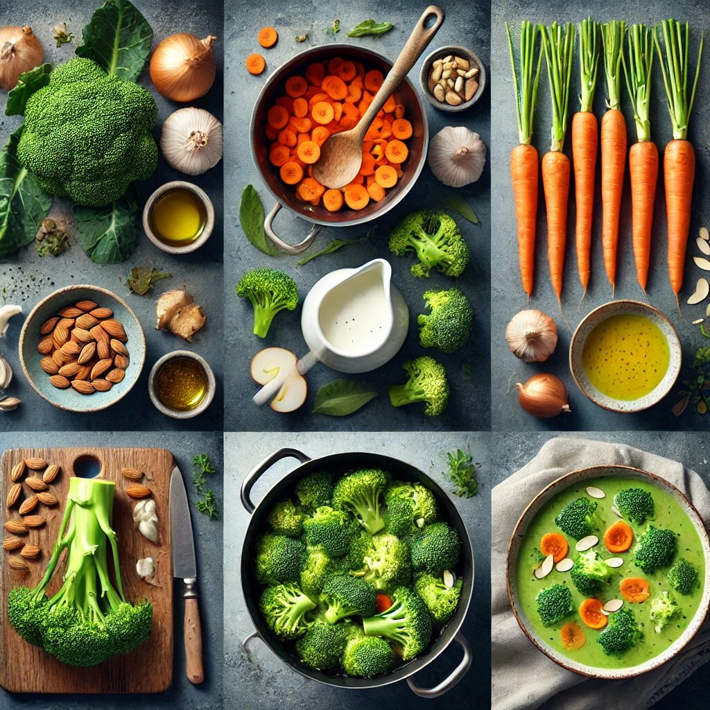 Сегодня мы приготовим крем-суп из брокколи с миндалём — удивительно нежное и полезное блюдо, которое сочетает в себе яркий вкус свежих овощей и легкую ореховую нотку. Этот суп порадует вас своей текстурой и насыщенным ароматом, а миндаль придаст ему необычную кремовость и добавит полезные жиры. Крем-суп из брокколи отлично подходит для тех, кто хочет питаться здорово и вкусно, а также для тех, кто ищет что-то новое в кулинарии. Давайте начнём готовить!
