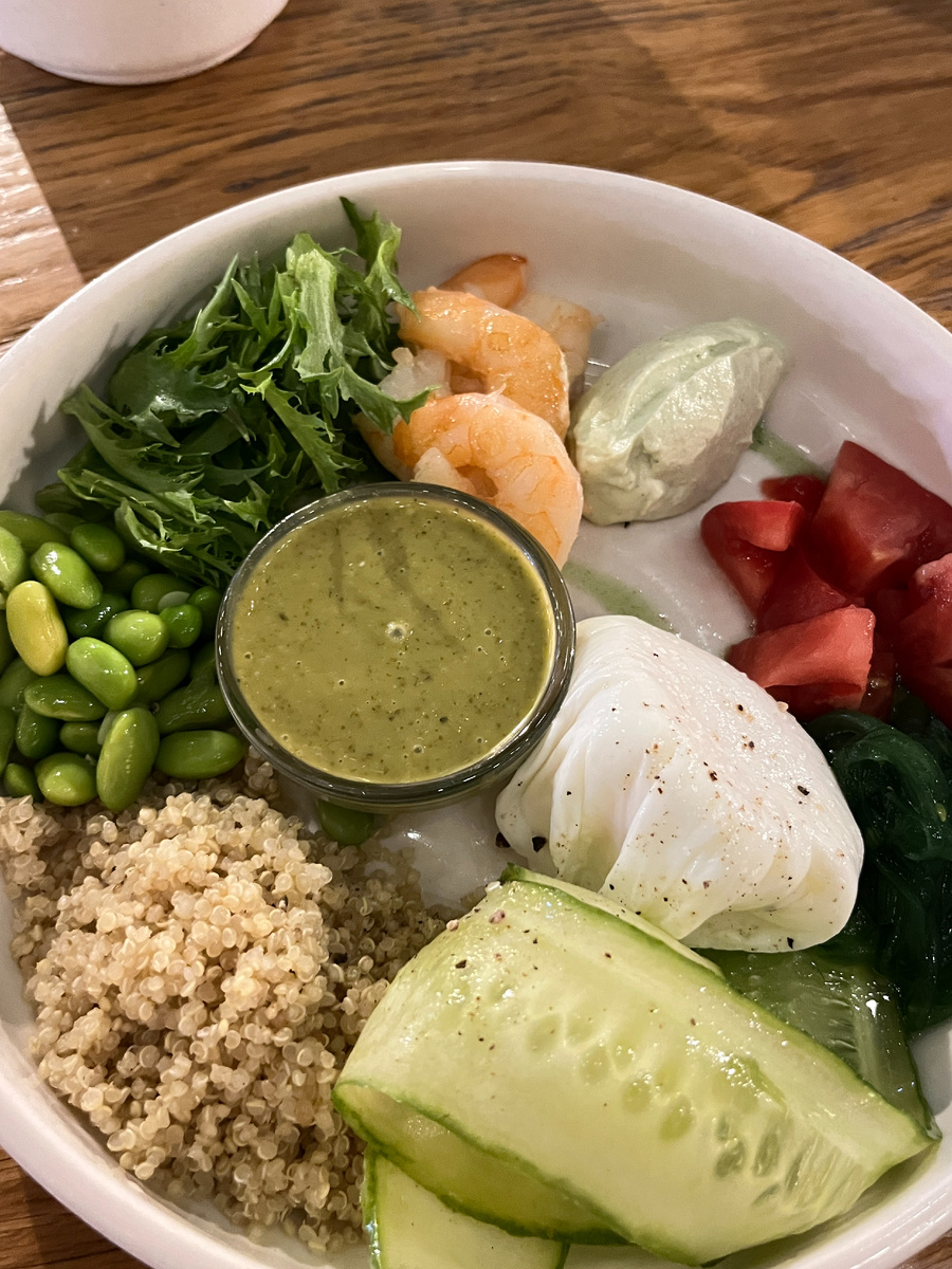 Экспериментальное: Зеленый боул с креветками