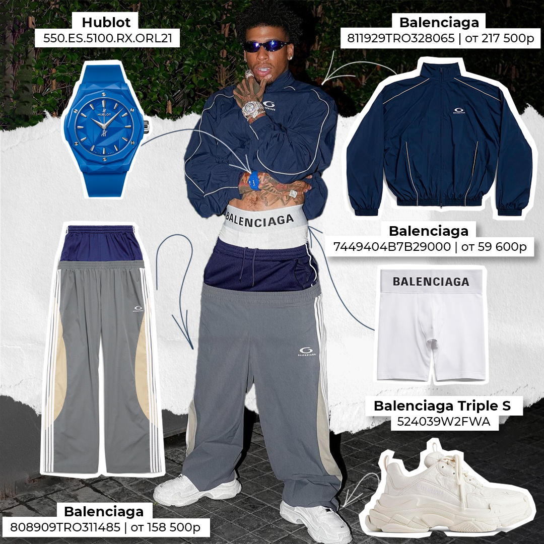 А остались еще рэперы, у которых в гардеробе нет ничего от Balenciaga? Если что мы без негатива – нам эти тотал-аутфиты бренда очень по душе. Balenciaga, арт. 811929TRO328065, цена от 217 500₽* Balenciaga, арт. 808909TRO311485, цена от 158 500₽* Balenciaga Triple S, арт. 524039W2FWA Balenciaga, арт. 7449404B7B29000, цена от 59 600₽* Hublot, арт. 550.ES.5100.RX.ORL21 *стоимость может изменяться в зависимости от курса и размера Больше интересного на нашем сайте POIZON