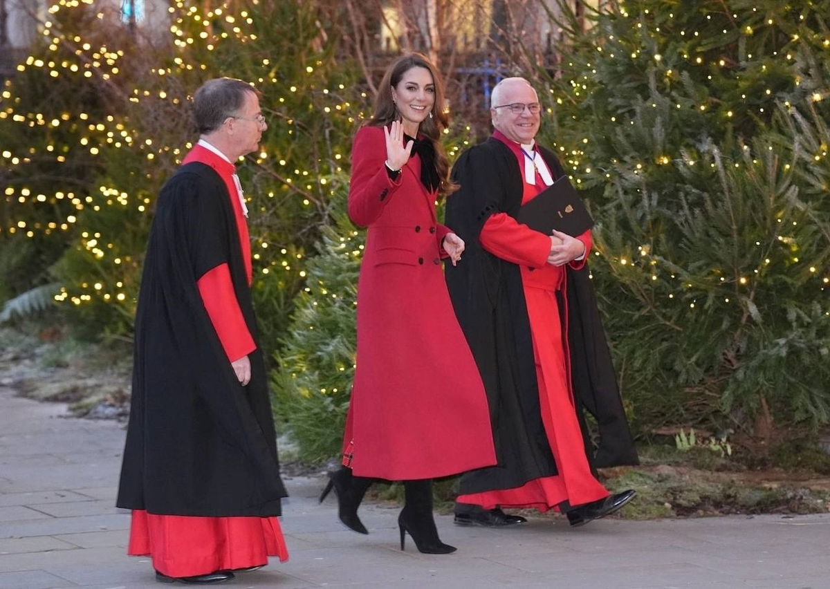 Принцесса Уэльская появилась вместе с семьей на своем личном главном мероприятии года. Кейт Миддлтон продемонстрировала идеальный праздничный и удобный образ, который можно собрать в магазинах даже масс маркета и выглядеть восхитительно. Принцесса приехала пораньше, чтобы подготовиться, а семья подъехала уже на сам концерт. Дочку нарядили в похожее на мамино бордовое классическое короткое пальто. Темно-синие колготки в тон костюмов братьев. Вся семья выглядит идеальной, как на рождественской картинке. Именно такого эффекта, скорее всего, и добивались. Вот только мимика детей оставляет желать лучшего. Выражение лица, улыбка — не менее важны, чем красиво подобранный наряд. Дети смотрят с непередаваемым выражением, особенно старший. Зато Кейт сияет. Это дар. Возможно, Кейт вовсе не рада, но на лице у ее всегда приятное выражение и это вызывает симпатию. Концерт рождественских гимнов «Вместе в Рождество» традиционно проходит в Вестминстерском Аббатстве. Его принцесса Уэльская проведе