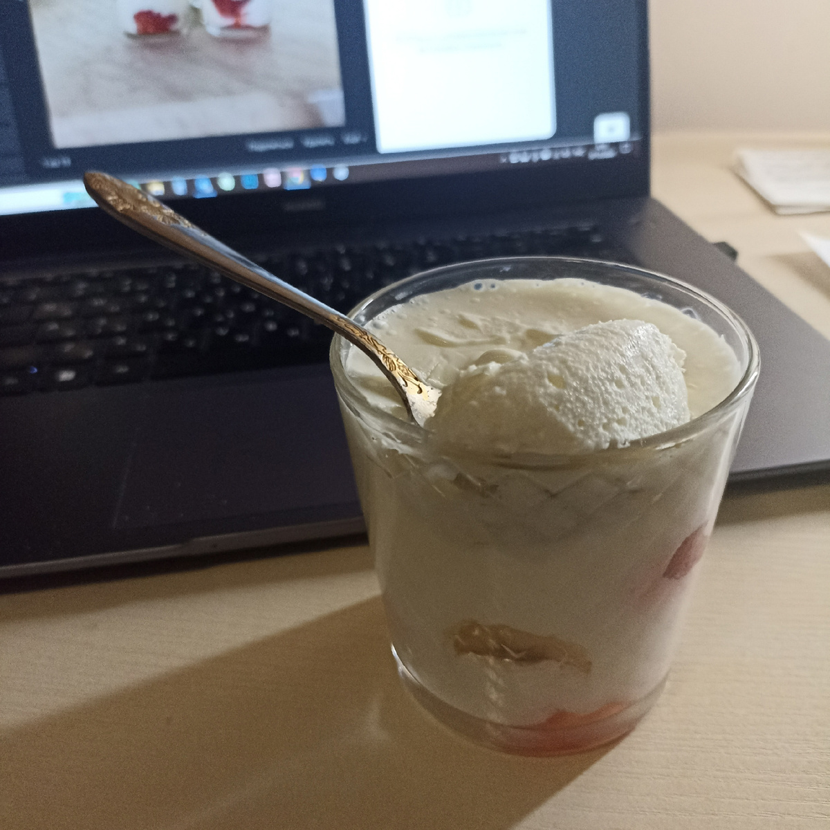 Я уже не помню что мы обычно заказывали на второе, помню салат витаминный, из капусты с клюквой. Он стоил какие-то копейки, но любимым нашим блюдом из за которого мы посещали Сказку был фирменный десерт - сметанный крем. А может и не фирменный, а просто десерт, но в меню он присутствовал всегда. Он как желе из сметаны с грецкими орешками и медом сверху. Как же мы его обожали с сыном! Этот крем нас манил в Сказку как магнит. Конечно я разузнала рецепт, что было делом нелегким. Интернета с поисковиком не было. Рецепты записывали в тетрадки, ими делились и хороший рецепт ценили, ну и научилась его готовить. Многие годы этот крем был уже моим фирменным блюдом и непременным условием нашего семейного новогоднего стола. Без него не было праздника.