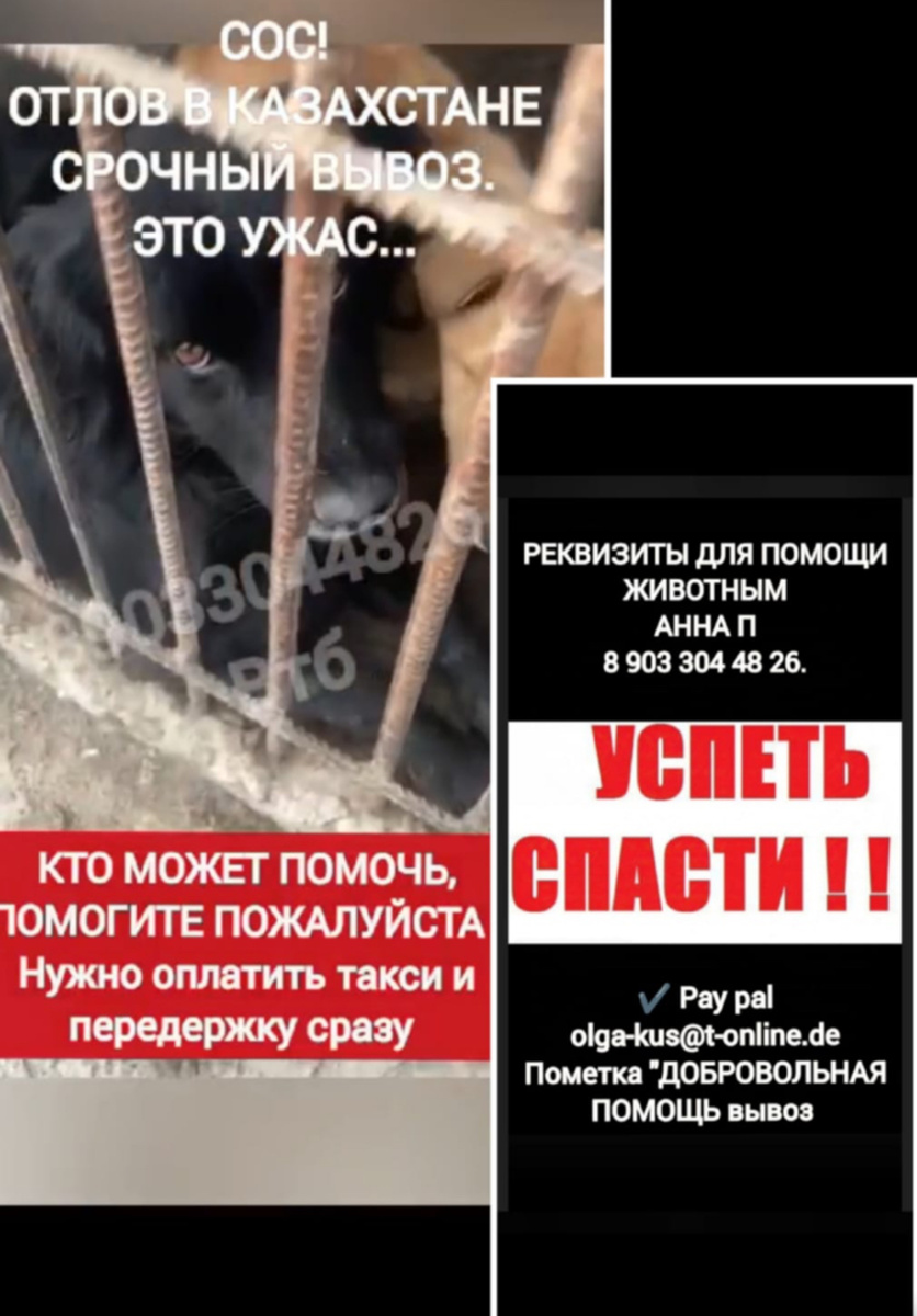 Срок Жизни 1 сутки! 🆘СРОЧНЫЙ СБОР НА ВЫВОЗ 💥 ИЗ ОТЛОВА В КАЗАХСТАНЕ. Такое чувство, что все силы ада брошены на уничтожение, им нет места на улице, в доме, в сердце человека...не пускают их , не нужны они никому , их "усыпят" 🐶Малыши вообще ничего не понимают, им кажется, что это какая то игра. Но это последняя игра в их жизни , с названием отлов.... Волонтеры не сдаются, но слишком большой поток жертв , день за днём. 🙏🏼 Нужна команда сильных людей...много людей. Может случится чудо и найдутся кураторы на оплату передержки, тогда можно спасти. Впереди Новый год ! Но только не для них.... Это может последнее что есть в их жизни , фото и видео. 🆘 Ведь ИМ ЖИТЬ ВСЕГО СУТКИ!!!! ПОМОГИТЕ ПОЖАЛУЙСТА. МОЖЕТ И В ЭТОТ РАЗ ПОЛУЧИТСЯ СПАСТИ .... ✔️ карта ❗ВТБ❗ Привязана к телефону +7 903 304 48 26 Анна П пожалуйста, - ОБЯЗАТЕЛЬНО ставьте ПОМЕТКУ "ДОБРОвольная помощь ВЫВОЗ 14/09" ✔️ Pay pal olga-kus@t-online.de пожалуйста, - ОБЯЗАТЕЛЬНО ставьте ПОМЕТКУ "ДОБРОвольная помощь