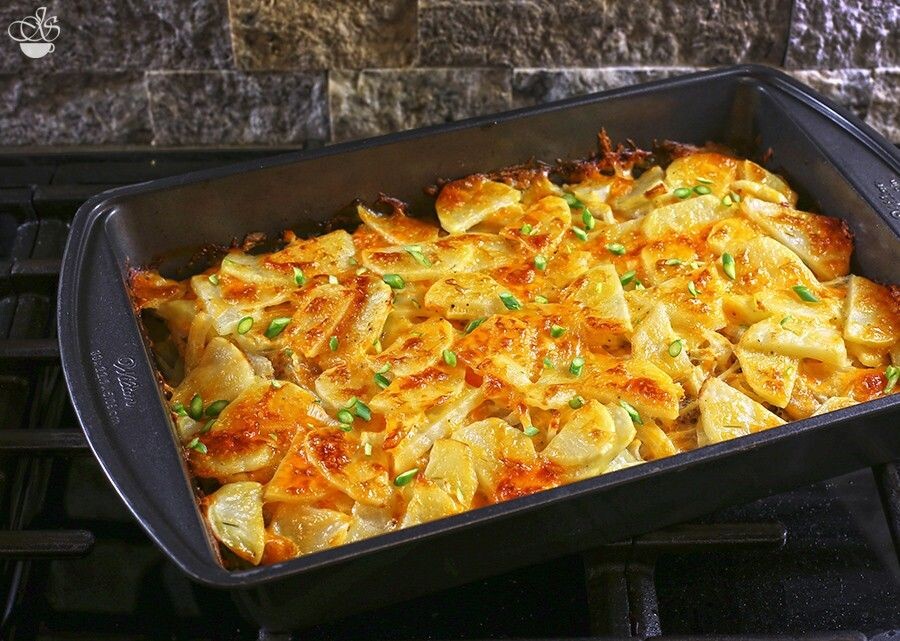 - Картофель лучше не отваривать, а именно запекать. Таким образом, он остается более плотным и не теряет форму в процессе готовки. Важно нарезать его не слишком толсто, чтобы картофель успел запечься, но не стал слишком мягким.