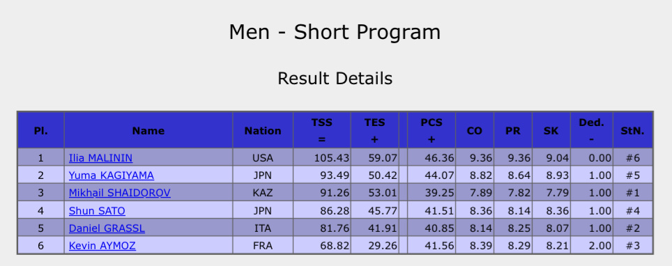 Международный финал Гран-при по фигурному катанию. Илья Малинин выиграл короткую программу. Кагияма — второй, Шайдоров — третий