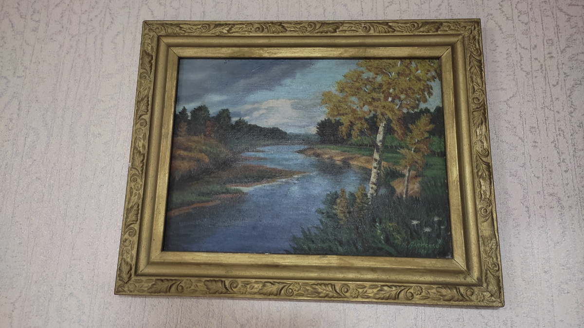 Добрый день всем! У моей бабушки по папиной линии была большая семья, семеро детей. Она и шесть братьев, с русской фамилией Алексеевы. Судьба раскидала их по стране, но все до последнего дружили и общались, а сейчас и их дети-внуки поддерживают связь. Два брата жили в Питере, один в Москве, двое во Владимире, один в Курске, а бабушка во Владимирской области. В 2010 году мы с братом и двоюродной сестрой, будучи в Питере, навещали бабушкиного брата, два года назад он умер, последний из семерых. Старший брат Николай жил в Москве и был военным. После выхода на пенсию увлёкся рисованием, нигде этому не учившись. Рисовал для души и своим братьям и сестре на память подарил по картине. Бабушкина картина хранилась у тёти, папиной сестры. На фанерной доске пейзаж маслом. Внизу автограф-Н.Алексеев, 1981. Когда мы были в Абрамцево, тётя, увидев мою заинтересованность живописью, предложила забрать картину себе. Я конечно же согласилась. И семейная реликвия теперь висит у меня на почётном месте.