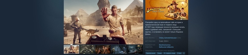 [Игра выходит в свет 9 декабря 2024 года] [Собрала положительные отзывы] [Премиум дает доступ с 7 декабря 2024] - фишка, высшие в игре [Страница игры Steam недоступна в России] - как сталкер [Игра доступна на STEAM и XBOX] - так же как недавний сталкер [АКТУАЛЬНО 09/12/2024] Добрый день, постарался собрать самую полную информацию про новейшую игру Indiana Jones and the Great Circle или а русском Индиана Джонс и большой круг. Исходя из недоступности игры в России, можно было бы сделать вывод, что не стоит к ней присматриваться, однако, разработчики все же позаботились о нас и активировать и играть из России можно без сомнительных смен региона. 1) Стнадартное издание, как это обычно бывает в обычное издание входит базовая игра и все. 2) Пермиум, совсем разительные отличия, получить доступ к игре с премиум изданием можно уже сейчас [7 декабря 2024] и получить данные ништяки: С изданиями разобрались, стоит озаботиться как же купить игру Indiana Jones and the Great Circle в Steam.