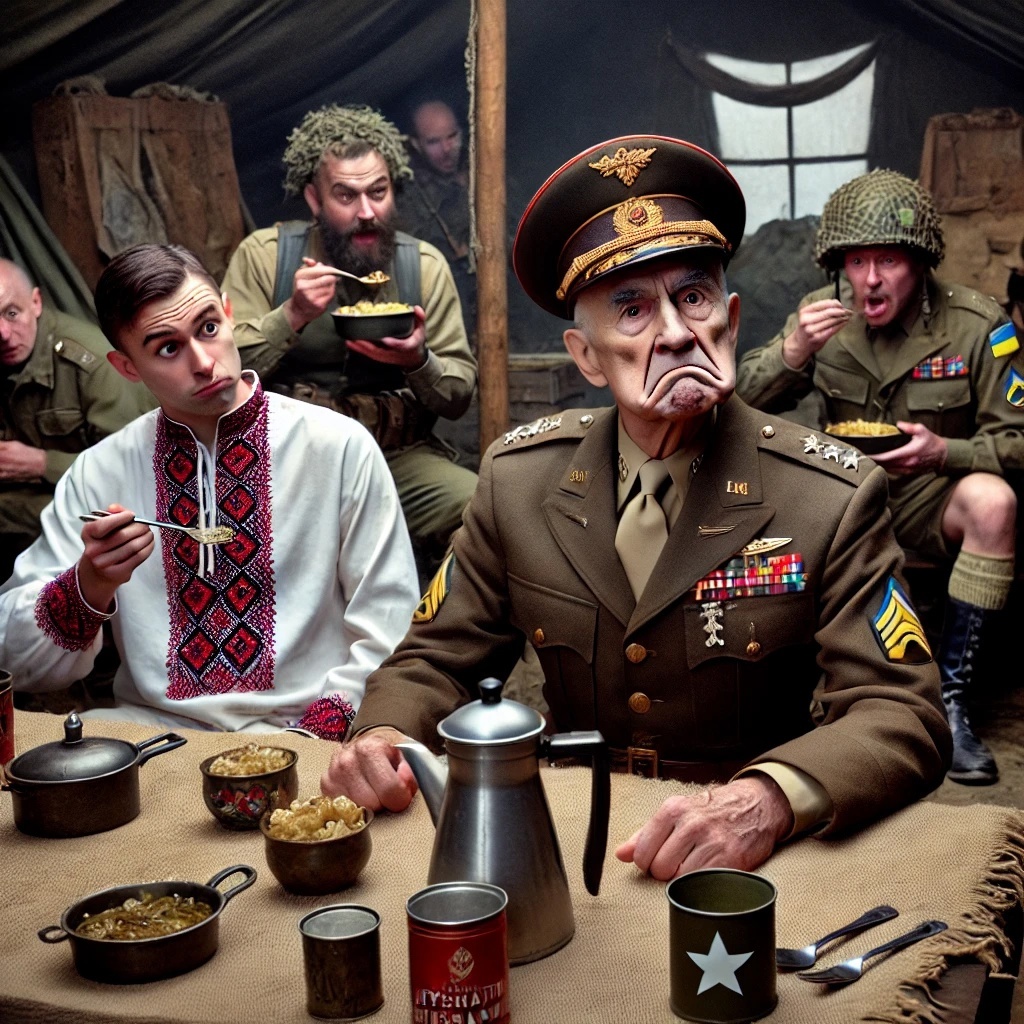 По плану полковника ВСУ Дмитро Набата, подхалима, вора и взяточника, встреча с заморским гостем предполагалась в отапливаемой палатке, где солдаты обычно ели.