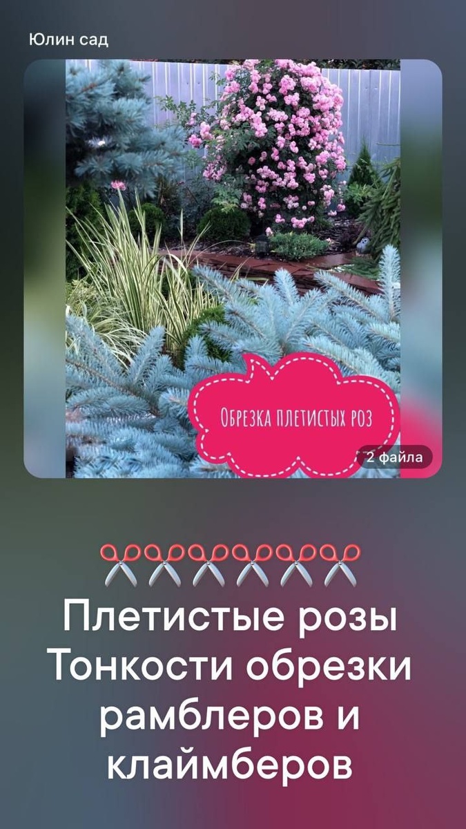 ✂️Обрезка рамблеров 👉однолетнии саженец желательно обрезать веснои, оставив 2-4 сильных побега, а остальные вырезав на кольцо. Осенью первого года можно вообще не обрезать розу 👉Веснои второго года слегка обрезаем верхушки плетеи, чтобы простимулировать ветвление. Боковые побеги укорачиваем до 2-3 почек 👉Летом второго и последующих лет после окончания цветения удаляют боковые побеги с отцветшими соцветиями Осенью второго и последующих лет у рамблеров оставляют несколько побегов текущего сезона, несколько побегов прошлого года (на которых было цветение) и по желанию не более одного старого трехлетнего побега. Остальные ветви вырезаем на кольцо. Жалеть их не стоит, так как рамблеры практически не цветут на побегах старше 2-х лет. Обрезка клаимблеров ✂️ 👉клаимберы цветут и на прошлогодних, и на молодых побегах, старые ветви все же желательно регулярно удалять. Цветение на них ухудшается, они более подвержены болезням, делают куст неопрятным 👉Осенью обрезать необязательно, осо