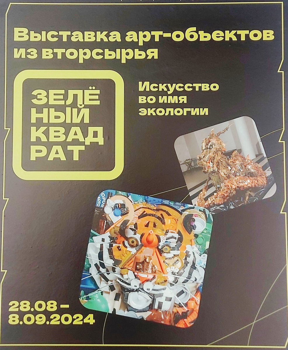 С 28 августа по 08 сентября 2024 года в галерее современного искусства Государственного музея изобразительных искусств Республики Татарстан можно было посетить выставку «Зеленый квадрат». На ней была представлена экспозиция арт-объектов, изготовленных из твердых бытовых отходов и вторичного сырья, Экспонаты выставки «Зелёный квадрат» выполнены финалистами одноимённого конкурса арт-объектов, организованного Публично-правовой компанией «Российский экологический оператор» совместно с арт-кластером «Таврида» и Всероссийским музеем декоративного искусства.
