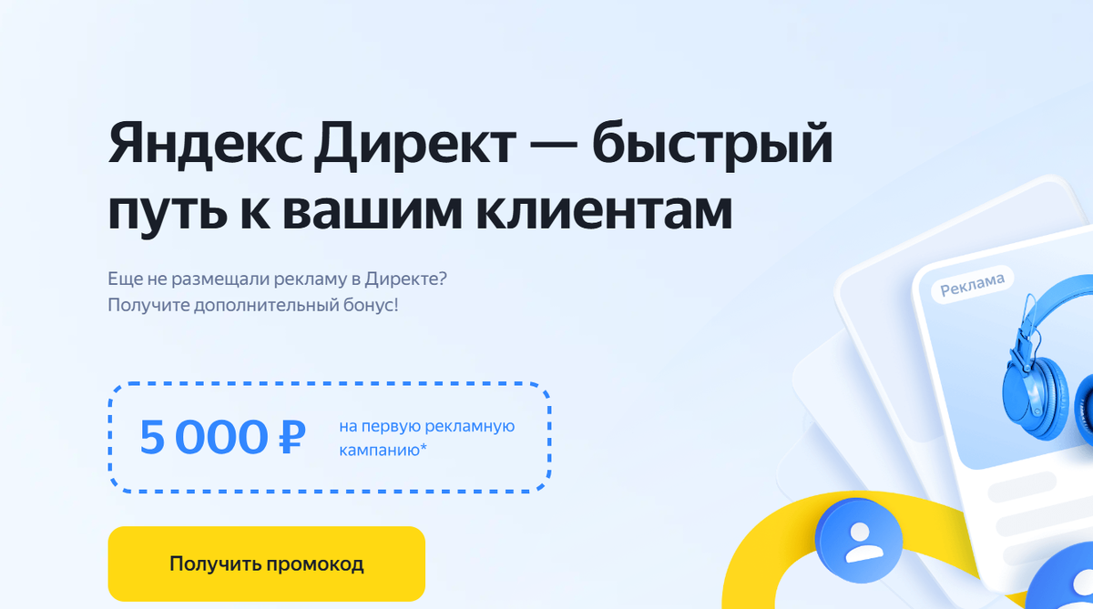 Промокод на 5000 руб. от Яндекс Директа на первый запуск